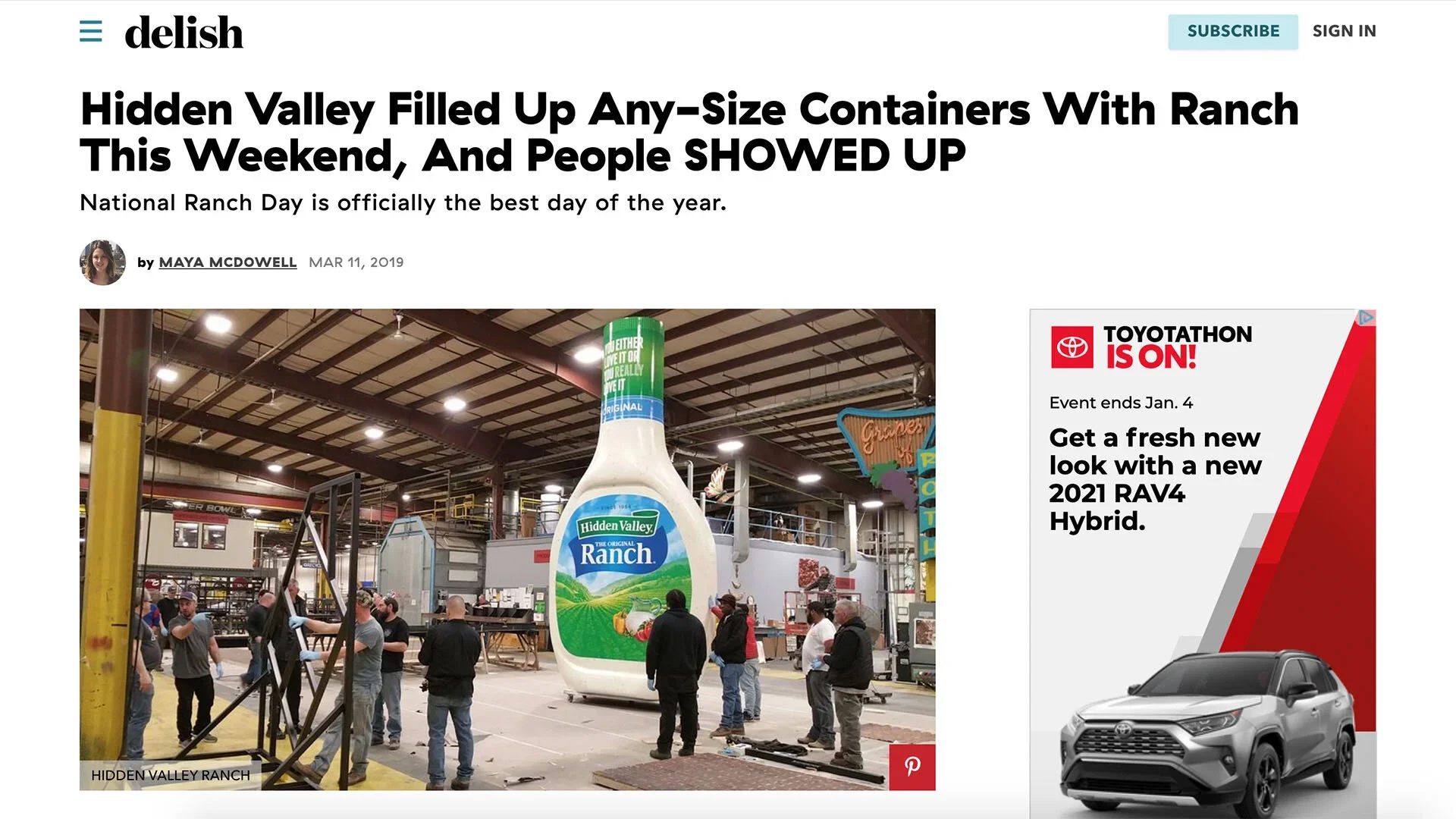 For National Ranch Day, we rolled a giant ranch bottle into Vegas and told fans to bring any container they wanted to fill. Spoiler: they absolutely did.