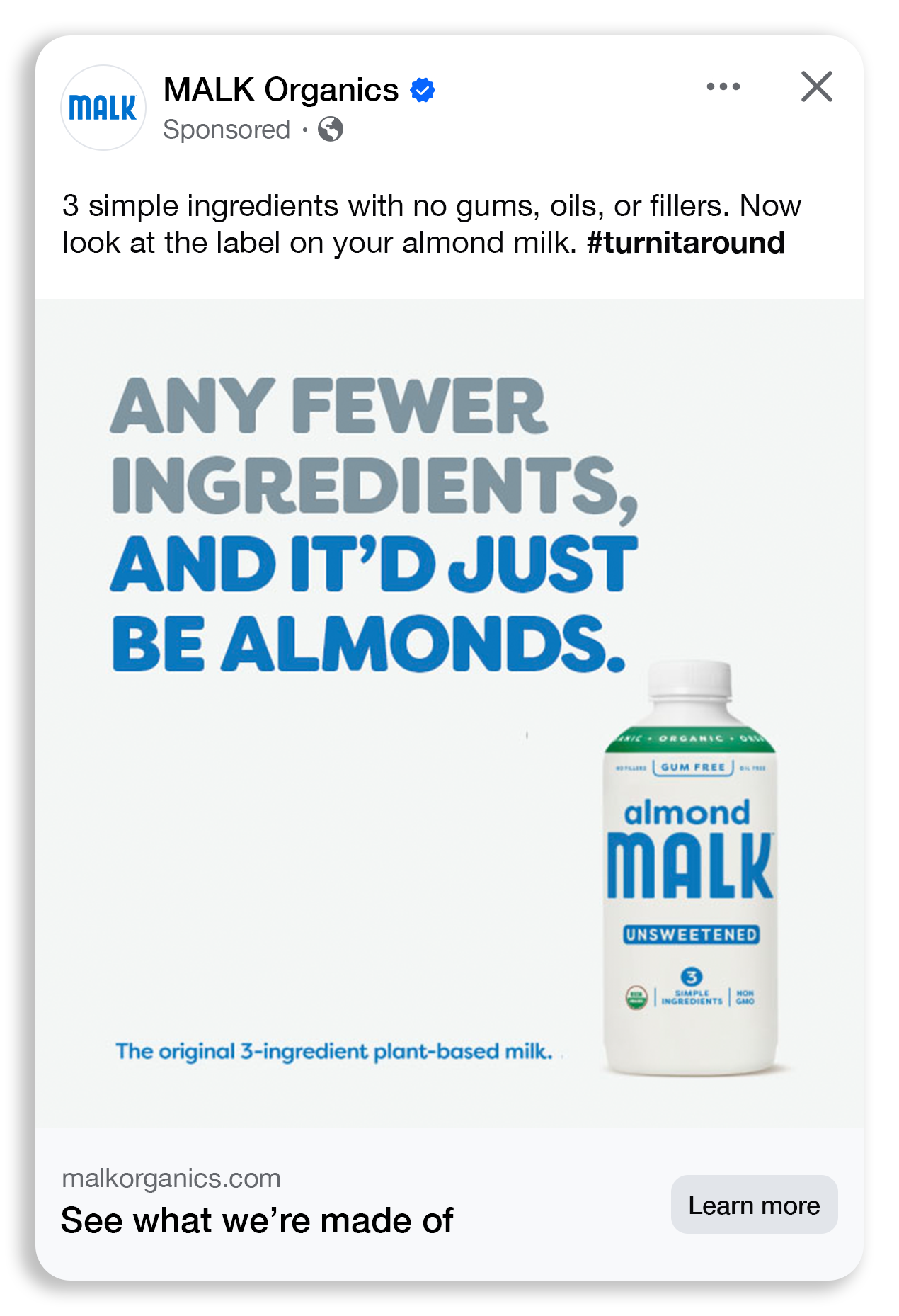Most people assume they’re making a healthy choice simply by choosing to drink plant-based milk — totally unaware that most of them are packed with gums, fillers, and oils. MALK keeps it clean. With just a few simple, organic ingredients and nothing to hide, the Turn It Around campaign invites consumers to do what most brands fear: flip the carton, read the label, and taste the difference.